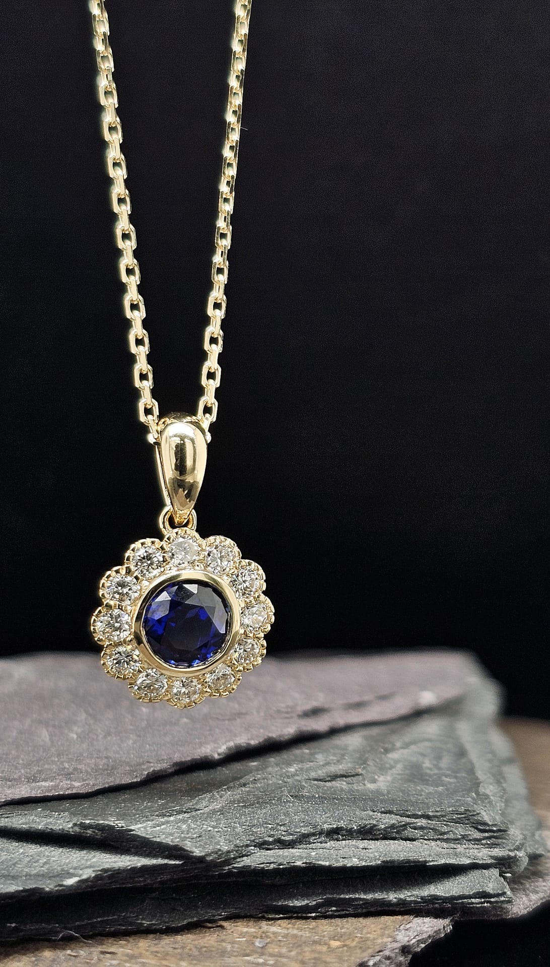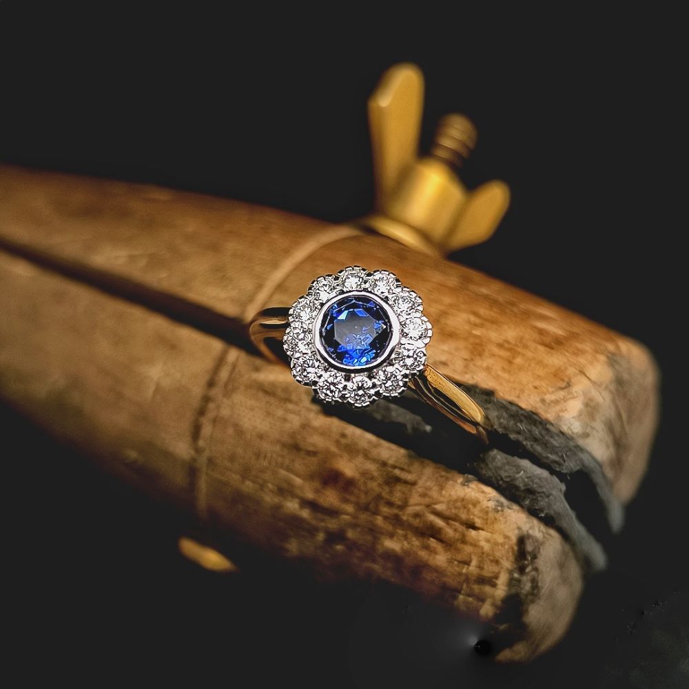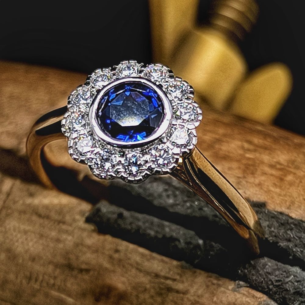 Sapphire and dimaond ring, made to order along with a pendant to match.